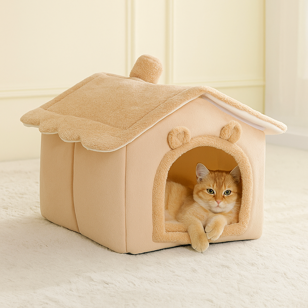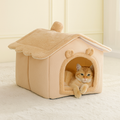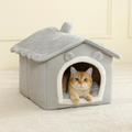 Crafted with a velvety knit texture and a cabin-style silhouette, it brings the warmth of the woods indoors. Every inch is designed to cradle your pet in comfort, from the padded base to the snug archway entrance that invites curling up and unwinding.